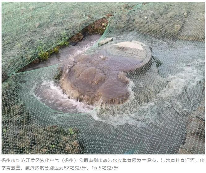 督察發現,部分區域管網破損、污水溢流問題多發。12月10日,督察組在揚州市經濟開發區春江路液化空氣(揚州)公司南側發現兩處污水管網漫溢口,大量污水排入春江河,在河面形成明顯的污染帶。當地專門開挖溝渠用于污水導流,表明該問題已存在較長時間。