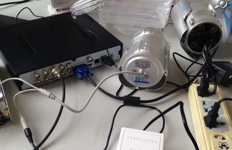 六、將電源適配器的電源輸出插頭插入監控攝像機的電源插口,并確認牢固度。